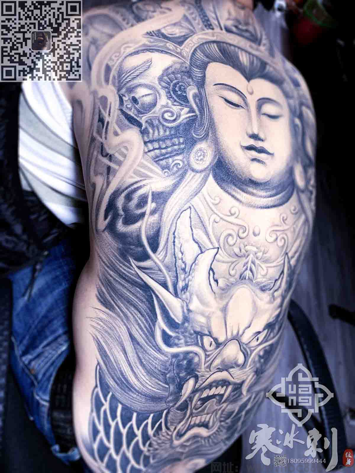 满背三面佛纹身